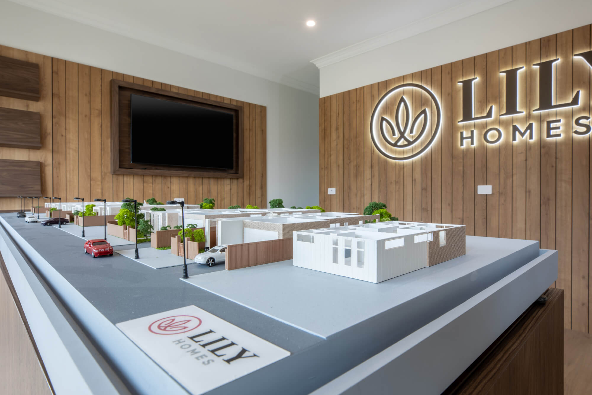 In a fierce, competitive Home Building Industry, Lily Homes needed a point of difference for their new Display Village at Oran Park. Working closely with the management team, PREMIER3D hand crafted a 1:75, full detail interior model showcasing 5 featured Designs. Detailed with pin LED lighting along with a specially made cabinet, the model is a key feature at the entrance to Lily Homes new Display Centre offering their clients a unique visual to their potential new home.